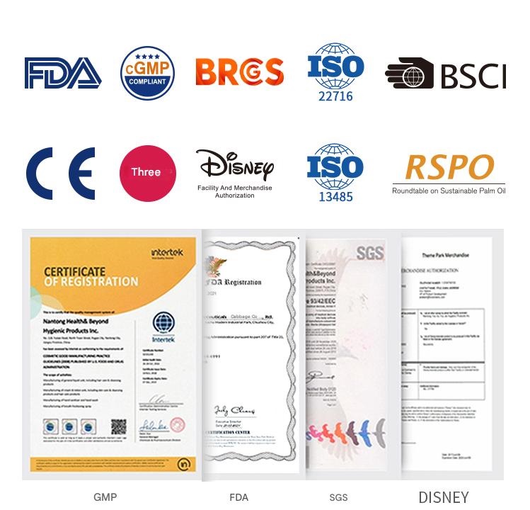 Vahvuus: 16 vuoden valmistuskokemus, 100 000 GMP-standardin mukaiset työpajat, 3 tuotantotukea, 75 000 m² rakennusalaa ja 4 miljoonan kappaleen päivittäinen tuotantokapasiteetti.